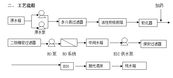 本工藝以常規制水流程為主設計,如用戶有特殊要求可另行提出。